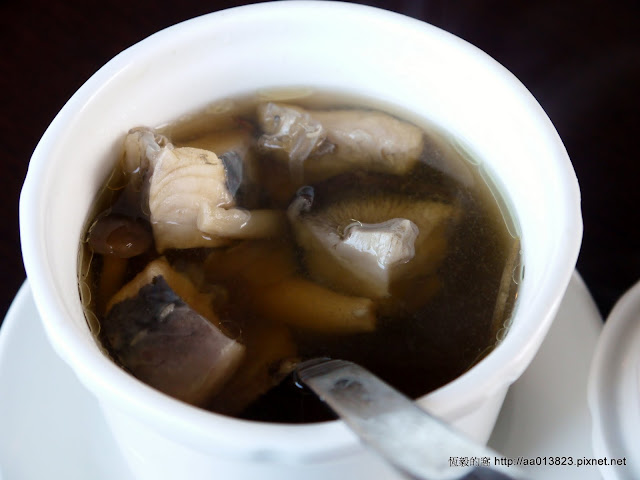 以夜市的藥燉排骨為例,一般藥燉排骨價位多在70元左右,而越靠近精華地段的夜市排骨可能相對就會少一些、湯頭淡一些,然而三芝八連莊花園餐廳的養生藥膳盅推出180元的價位著實讓我有些意外,瞧瞧這碗養生藥膳中的不僅有香菇,鱘龍魚塊還不少,更可貴的是請特別留意鱘龍魚塊旁的半透明狀的膠質,我想這碗應該是很多女生的最愛~