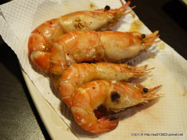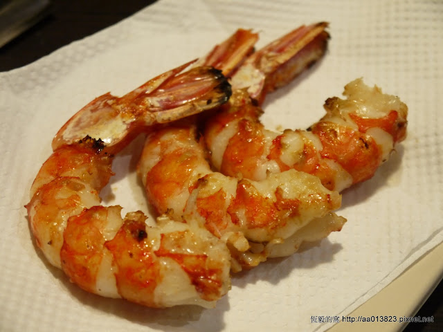 光放在烤盤上氣勢就是不一樣,最上方是京都古甕豬大排,中間是普羅旺斯紅酒牛肋條,最下方就是澎湖野生大明蝦與頂級阿根廷天使紅蝦;瞧瞧每支瞎子都比京都古甕豬大排和普羅旺斯紅酒牛肋條還要長,有圖有真相~